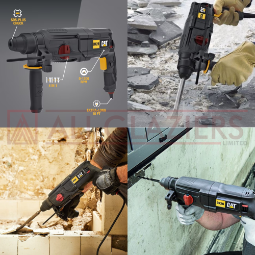 orded SDS-Plus Rotary Hammer Drill was born from superior engineering and next-generation technology. The result is a rotary hammer drill that boasts outstanding performance and lives up to the legendary Cat reputation for quality and durability. Made specifically to be the professional user’s rotary hammer drill, with the power and functionality to handle a wide range of applications, and the rugged construction to take on tougher jobs. The rubber overmold grip provides comfort and control with a trade-length power cord with swiveling ball joint allows for freedom of movement in the workspace. Cat Tools are made for the pros, with advanced features and capabilities that add up to higher productivity with less operator fatigue and reduced downtime. Let’s Do The Work.