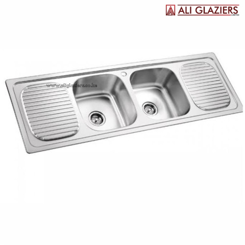POLISHED DOUBLE BOWL DOUBLE DRAIN / TRAY KITCHEN SINK