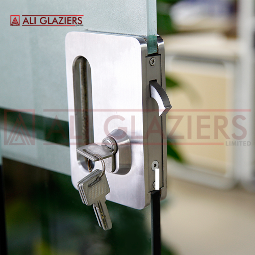 STAINLESS STEEL FRAMELESS GLASS DOUBLE SLIDING DOOR LOCK SET WITH FINGER PULL IN NAIROBI , KENYA