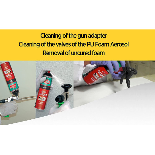 - Powerful solvent based aerosol cleaner for removing uncured PU foam ( straw and gun adapter foam )