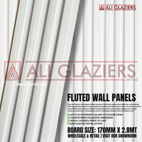 Fluted wall panels are resistant to mold, water, termites and moisture. They are interior and exterior décor products that adds texture and depth to a wall making them an aesthetic feature that compliments with any interior décor style. The most common areas fluted wall panels are placed includes the living room, lounge sitting room, family rooms and bedrooms. They are often installed as a backdrop in a wall that can serve as a focal point. A slatted wall panel at the TV section has become very popular in the Kenyan residential market!