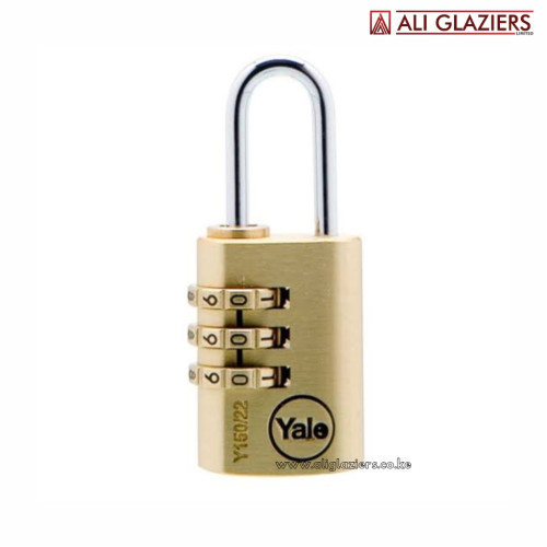 The Yale Y150 combination padlocks offer the convenience of a 3 dial re-settable combination. The padlock has a solid brass body and chrome plated steel shackle.