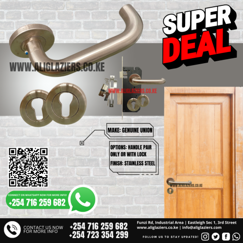 UNION STAINLESS STEEL FINISH LEVER HANDLE ON ROSE COMPLETE LOCKSET IN NAIROBI, KENYA