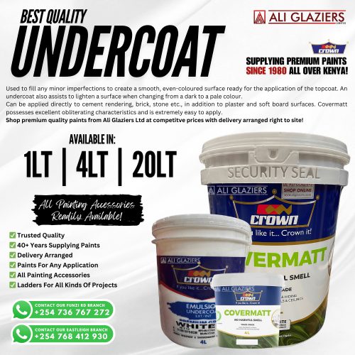 Tags: CROWN, CROWN COVERMATT, COVERMATT PAINT, CROWN PAINTS KENYA, COVERMATT 20L, COVERMATT 1L, COVERMATT 4L, PAINT TINTING, CEMENT PAINT, BRICK PAINT, UNDERCOAT, UNDER COAT