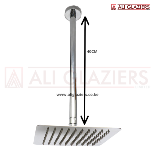 HIGH QUALITY MIRROR FINISH 40CM CEILING SHOWER ARM WITH SQUARE SHOWER HEAD 8" IN NAIROBI KENYA